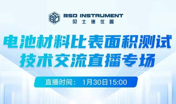 适用对象:电池行业的研发人员、分析检测人员、品质管理人员主题:➢电池正负极材料,如硅碳负极,多孔碳,石墨,磷酸铁锂、钴酸锂、三元,导电剂,添加剂等材料比表面积测试的注意事项、准确度提升方法等;➢贝士德仪器3H-2000A、BSD-BET420、BSD-660系列全自动高性能高通量比表面积及微孔分析仪,仪器应用经验分享、常见故障的处理方法、日常维护、操作使用注意事项;时间:2026年1月30日(周五